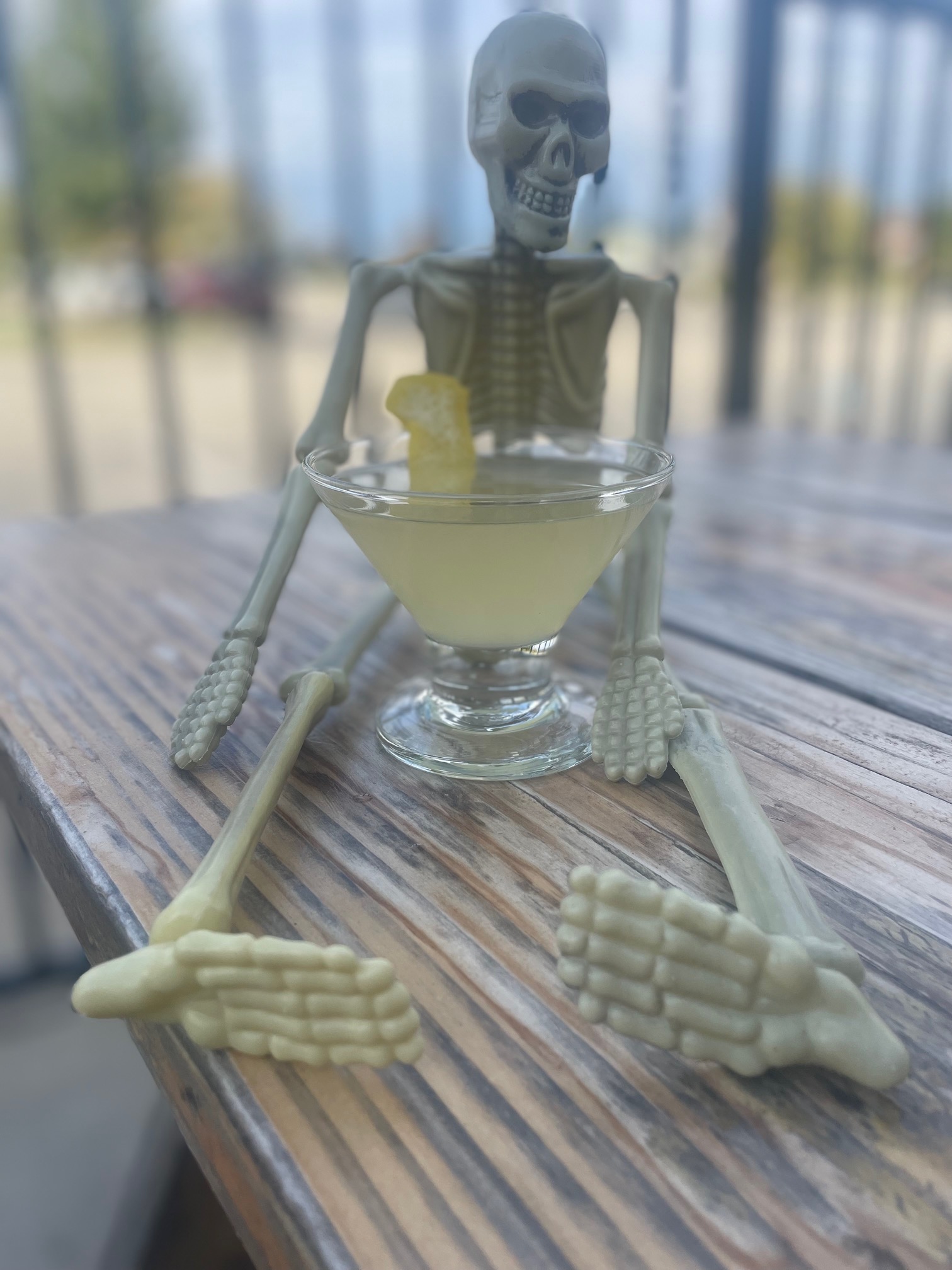 A scary take on a classic! Gin, Apple Brandy, elderflower infused Vodka and tonic for a refreshing Pick me Up! Garnished with a twist of lemon.