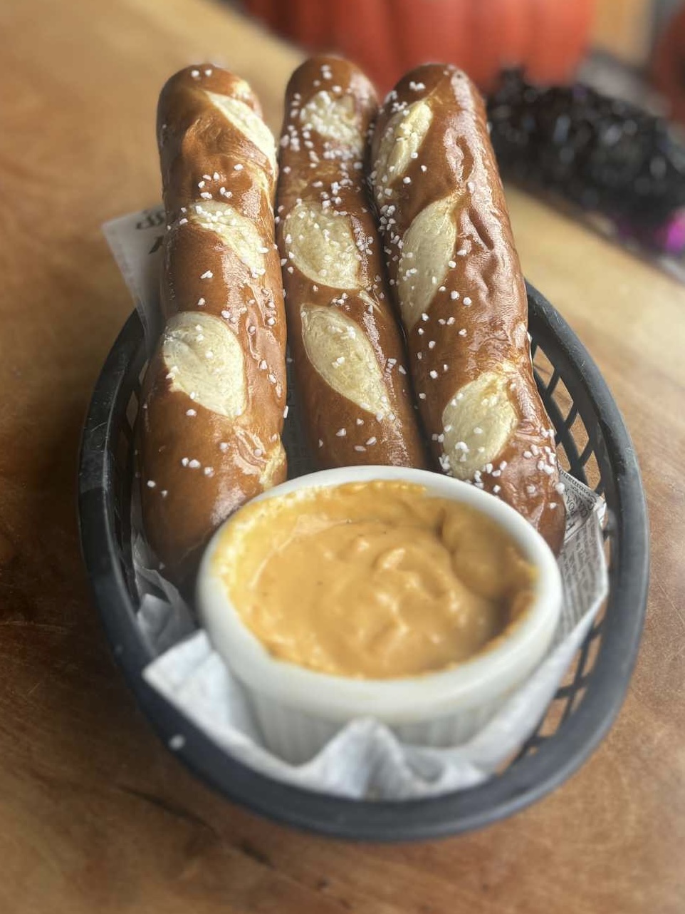3 Bavarian pretzel sticks. Served with beer cheese and pretzel mustard.